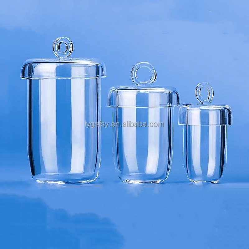 कारखाने अनुकूलित फ्यूज्ड सिलिका क्वार्ट्ज ग्लास कंटेनर हैंडल के साथ 0